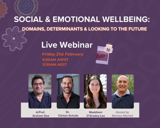 As part of a series of webinars commemorating the 10th anniversary of the seminal textbook, Working Together: Aboriginal and Torres Strait Islander Mental Health and Wellbeing Principles and Practice (2nd edition), the Centre of Best Practice in Aboriginal and Torres Strait Islander Suicide Prevention presents a conversation between two of the book's co-authors and an accomplished young mental health advocate, PhD student, and founder in this live webinar event.