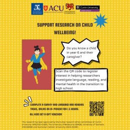 Participants are sought for the Wellbeing During the Transition to High School study to better understand and support the socioemotional wellbeing of children with language and literacy difficulties during their transition to high school. Children entering Year 6 in 2025 (or who are currently in Year 6) and their caregivers are invited to take part in the research, to identify potential risk and protective factors that could become the targets of mental health promotion interventions.