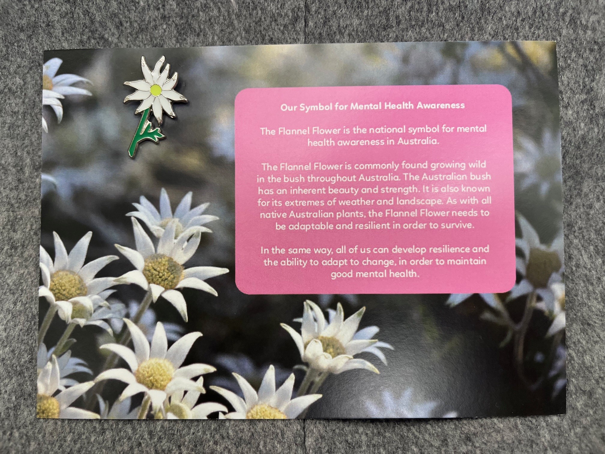 Help Mental Health Australia raise awareness of mental health issues by purchasing and wearing a Flannel Flower pin. The Flannel Flower, an Australian native, is the national symbol for mental health awareness. Click here for more information on the Flannel Flower.